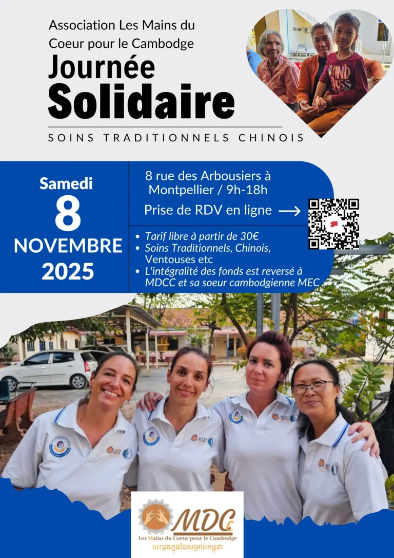 Une journée de soin au bénéfice des Mains du Coeur et des Mains de l’Espoir pour le Cambodge, ONG cambodgienne récemment créée pour faire vivre et pérenniser le travail entrepris depuis plusieurs années.